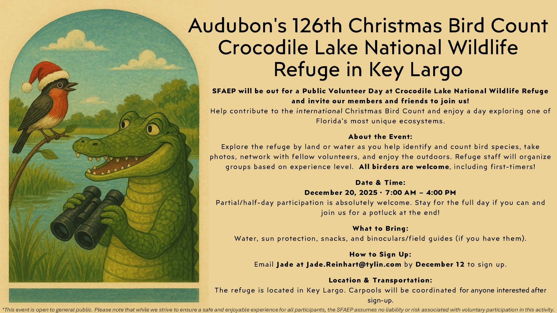 Please RSVP to rsvp@sfaep.org with the number of adult and minor attendees to reserve your kayak. For additional information, contact Greg Sitomer at gregory.sitomer@miamidade.gov.